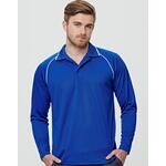 Description: Breathable diamond knitted fabric. Long raglan sleeves. Contrast piping on raglan sleeve seams and on collar.